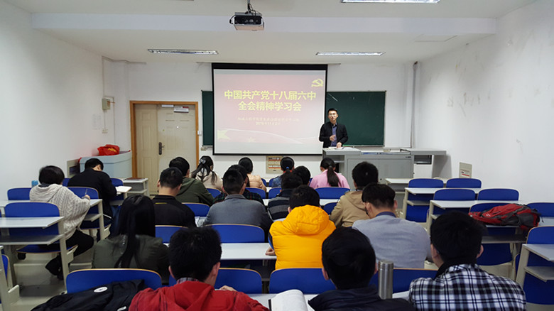 学生党总支政治理论学习中心组在格物楼618召开中国共产党十八届六中全会精神学习会,该院辅导员、各学生党支部书记、团支书、主要学生干部以及学生群众代表30余人参加了此次会议,团委书记吴其林主持会议。